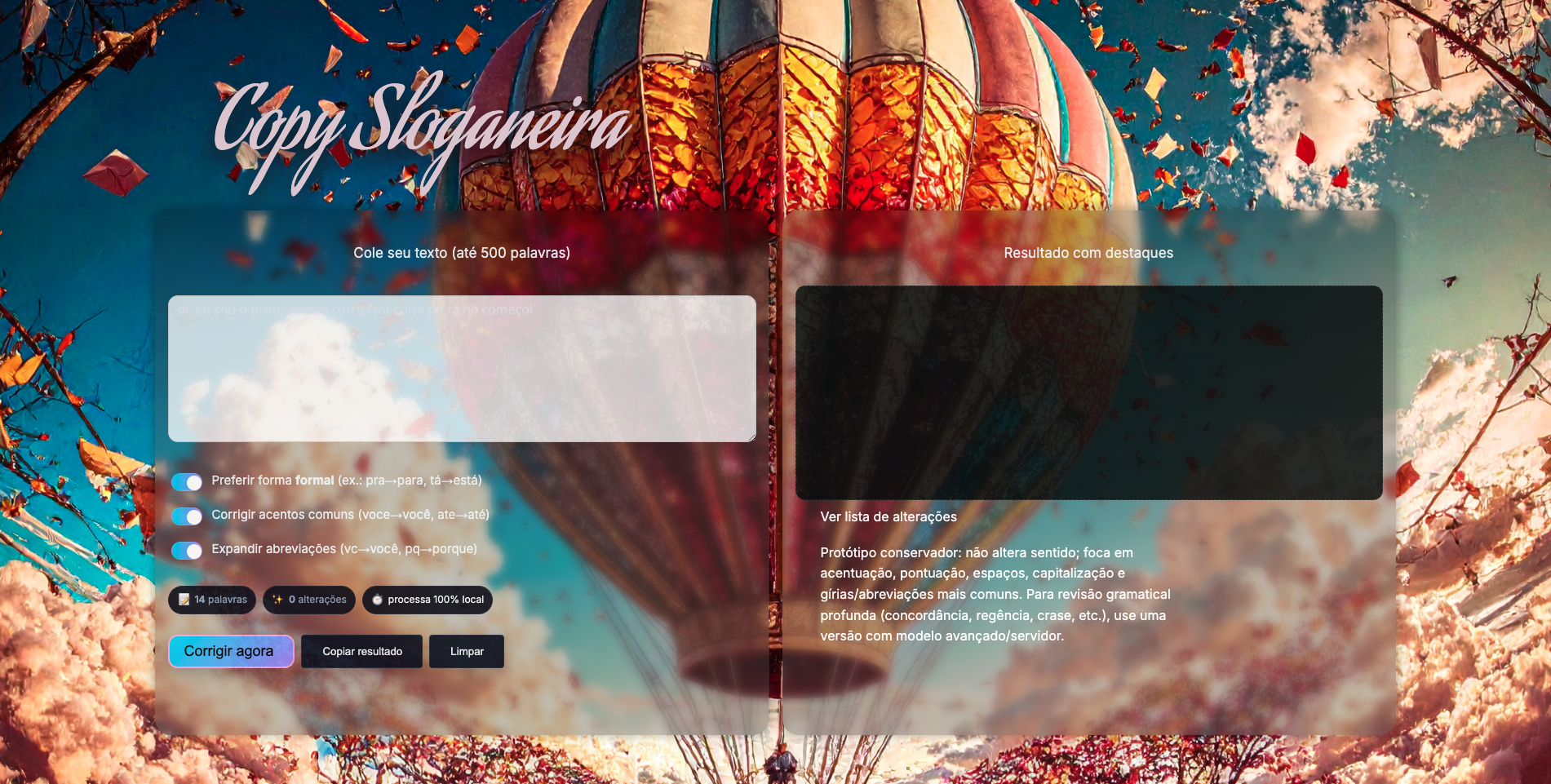 Pequeno, rápido e roda on/off. O Proto IA revisa textos com a delicadeza de quem entende o idioma. Corrige acentuação, ortografia e pontuação, mantendo o tom original do autor. Ideal para quem vive de escrever, editar e ensinar.