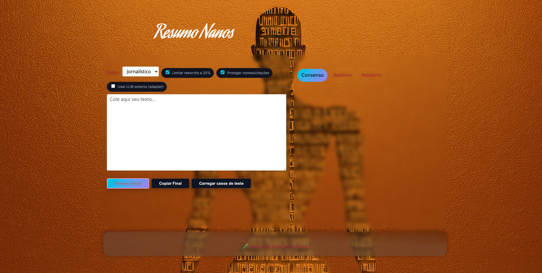 Lê blocos de texto, PDFs ou artigos de até 1.000 palavras e gera um resumo direto ao ponto, sem enviar nada pra nuvem.
